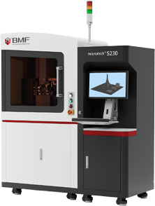 A 弊社の独自開発のPμSL(ProjectionMicroStereolithography) と呼ばれている投影型マイクロ3D光造形技術を採用しております。